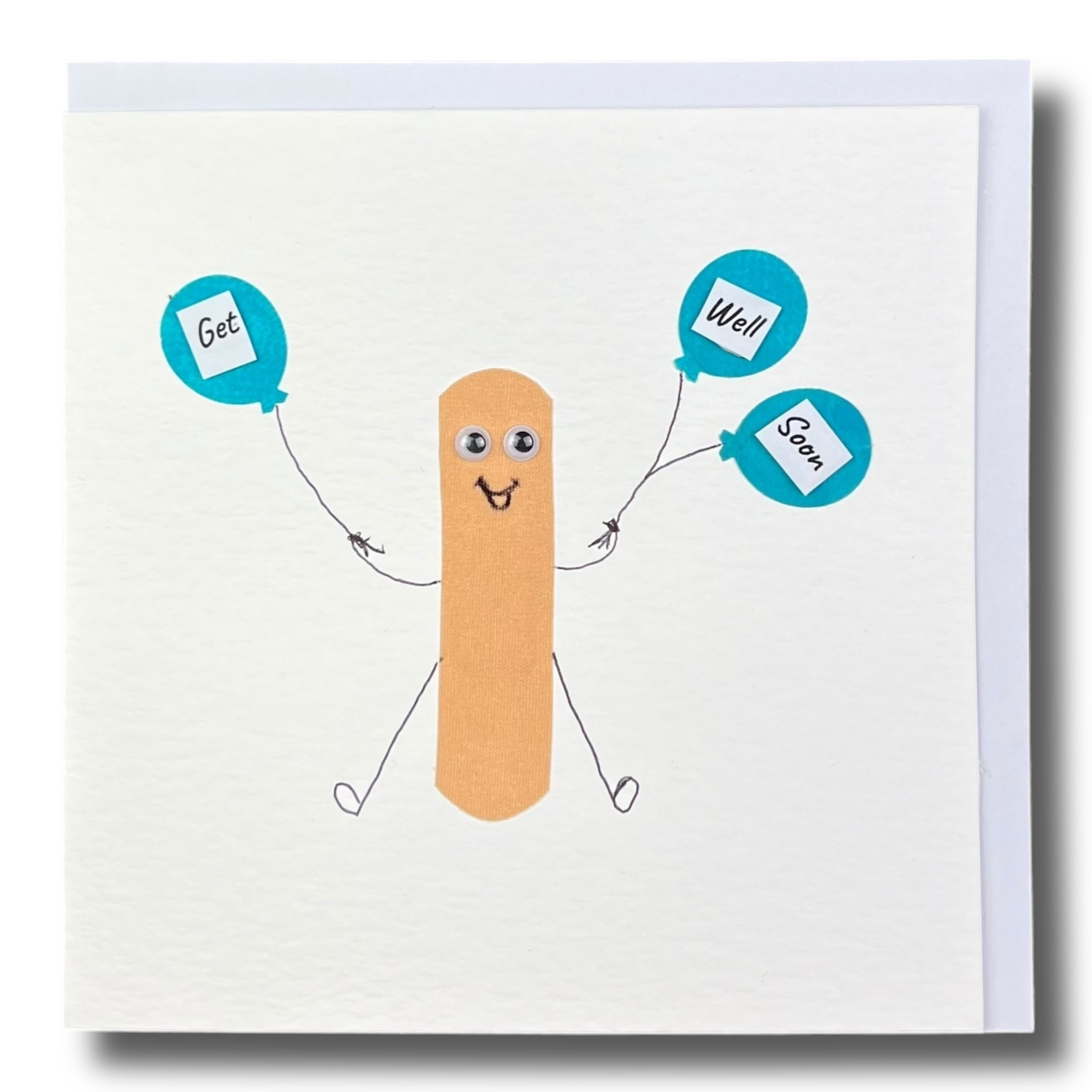 This is our ‘Get Well Soon’ card, made using a plaster and recycled teabags.