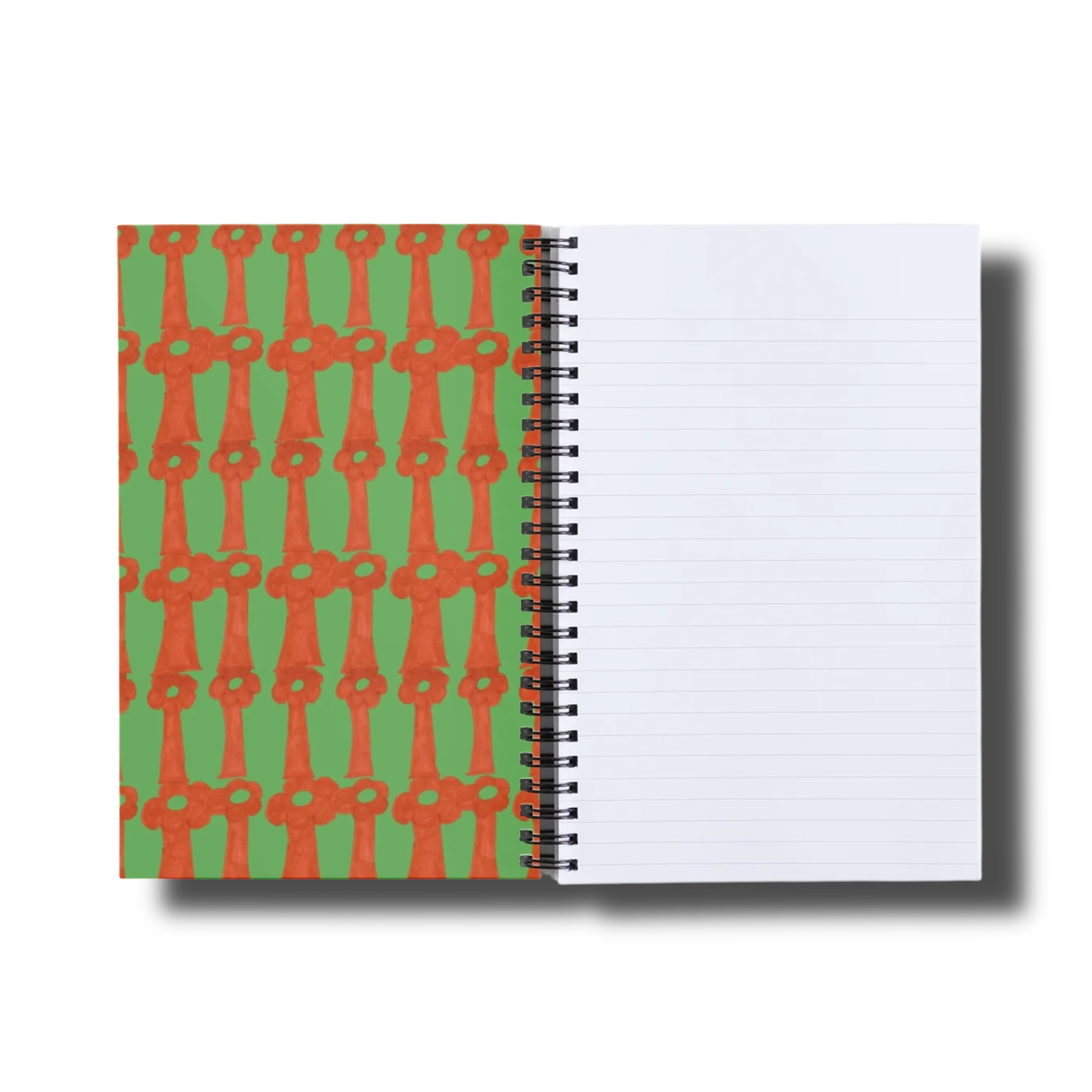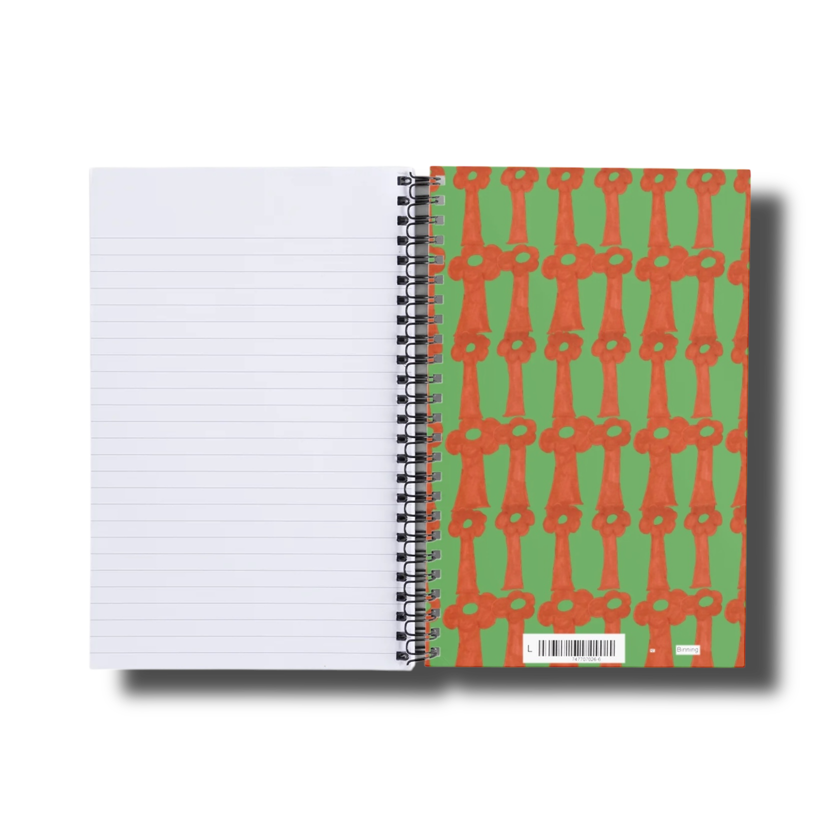 This notebook features a beautiful red floral print and was designed by Oliver.