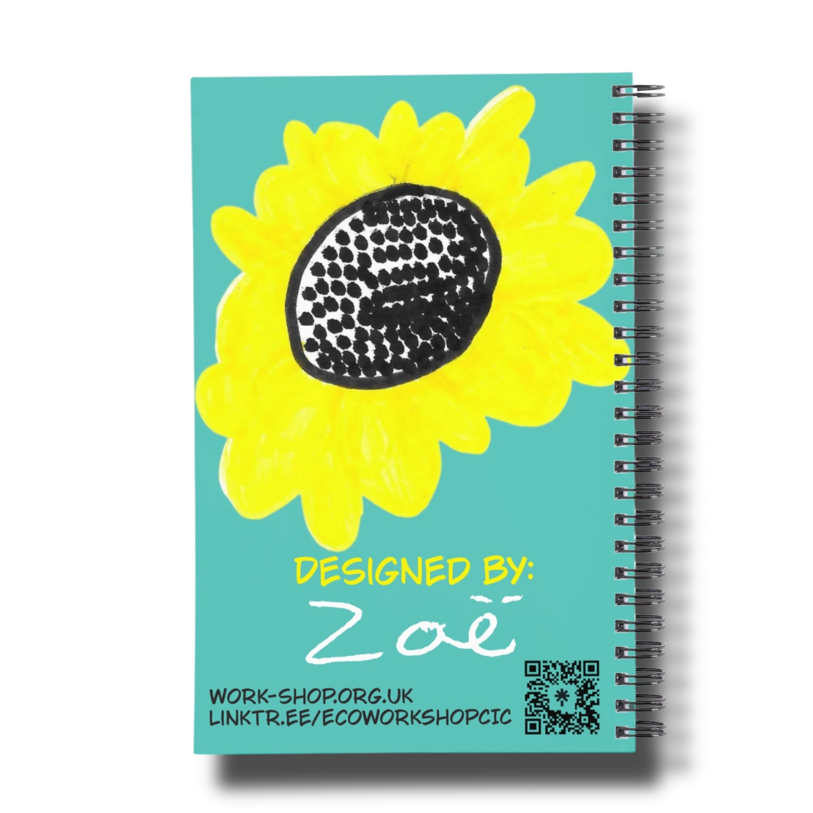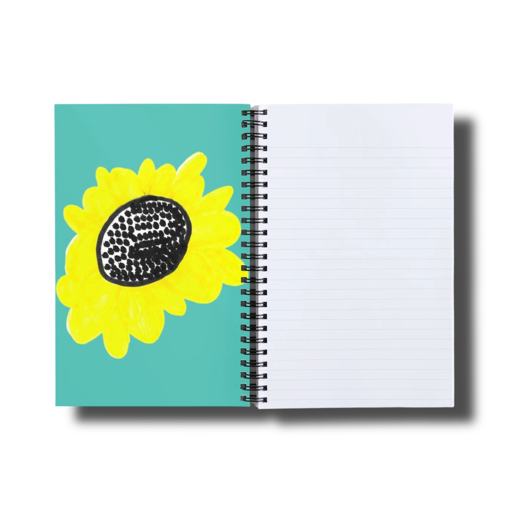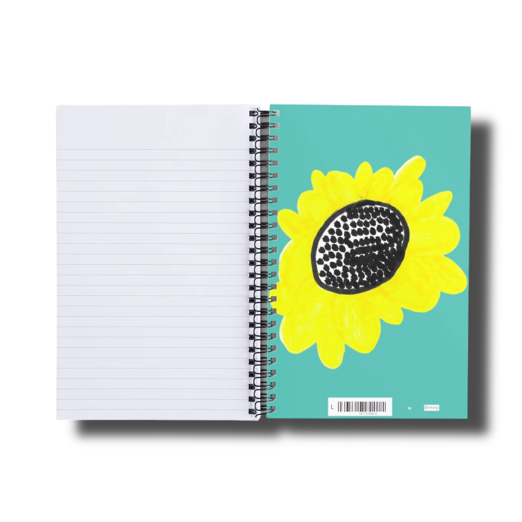This notebook features a beautiful sunflower print and was designed by Zoe.